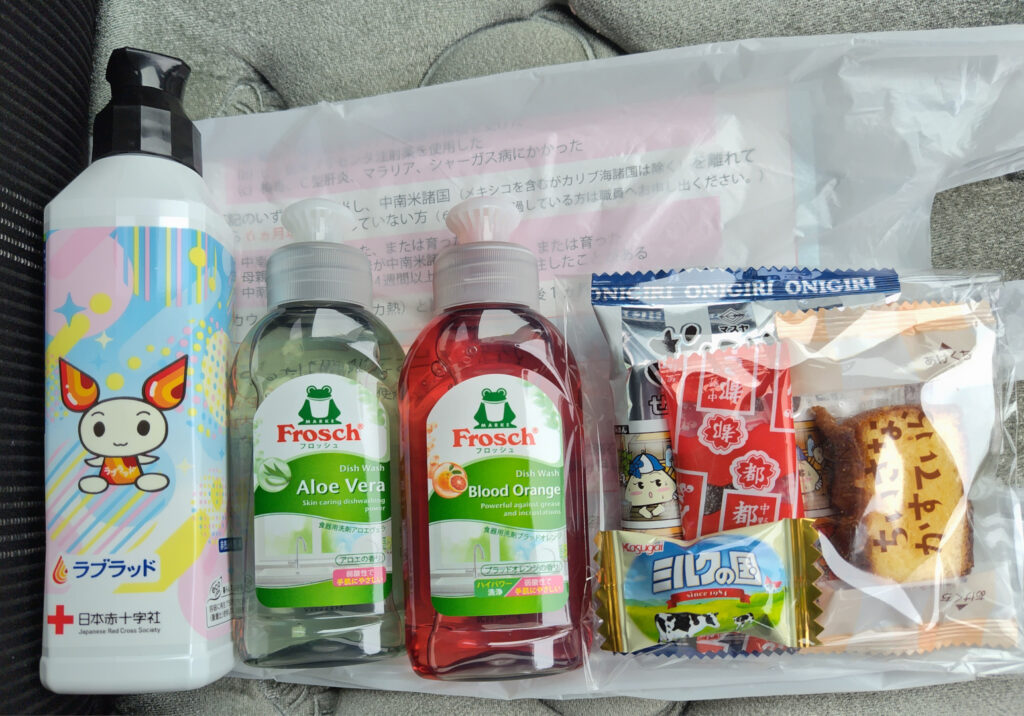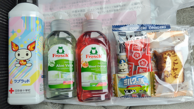 処遇品は、「新生活応援献血キャンペーン」で「フロッシュ食器用洗剤」、