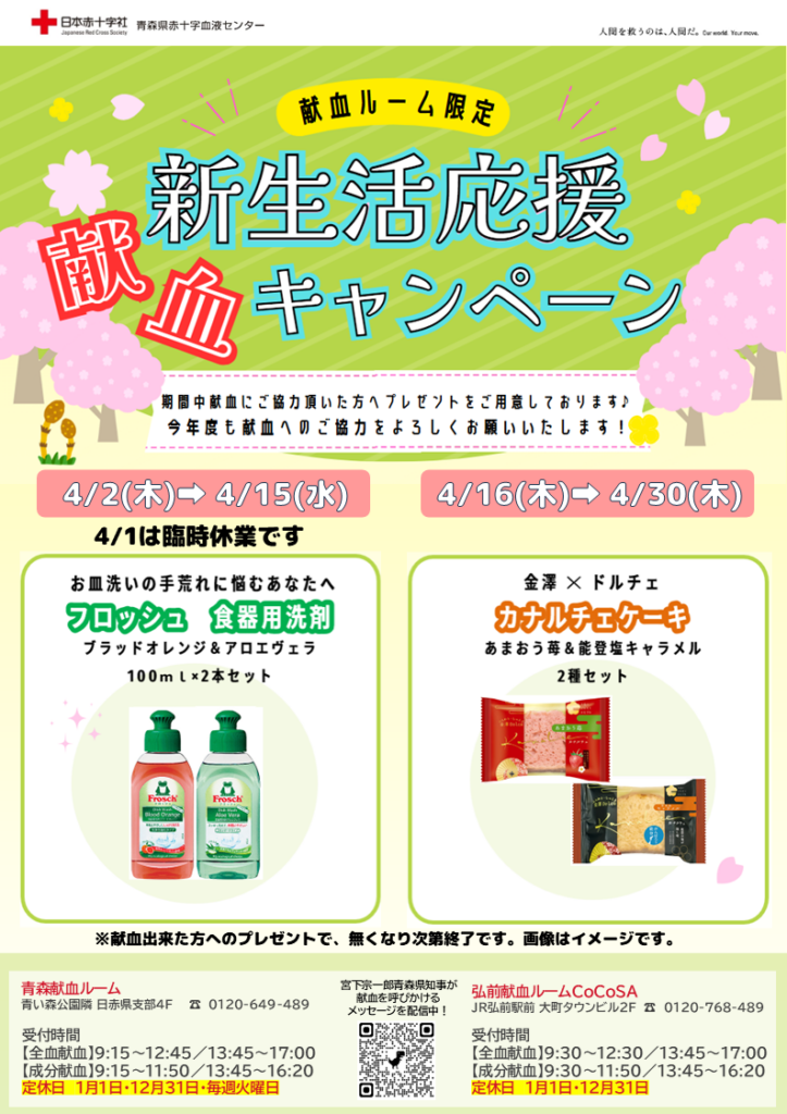 「新生活応援献血キャンペーン」の内容は以下の通り。