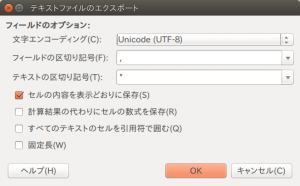 作成したデータを保存する際は、「ファイル」メニューから「名前を付けて保存」を選び、右下のファイル形式から「テキスト CSV(.csv)」を選び、ファイル名を入力し、左下の「フィルター設定を編集する」にチェックを入れて「保存」を押します。