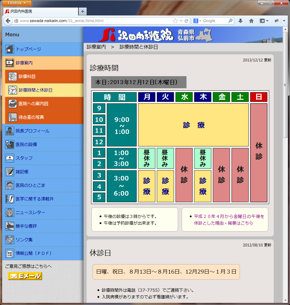 沢田内科医院HPは、レンタルサーバ「TOK2PRO」を利用中ですので、そちらで時計が狂わなければ、閲覧者のPCの時計が遅れていても正しい日付を表示します。