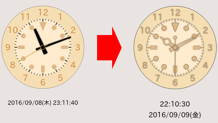 デザイン変更 前回の時計から、短針(時針)、長針(分針)、秒針のデザインを変更しました。 CanvasのquadraticCurveTo()メソッドで、ペジェ曲線で描いたのですが、なかなか難しい・・・。 ・・・もしかすると、良いツールがあるのかも知れない・・・。 インラインフレームに表示してみました。 みっともないソースはこちら